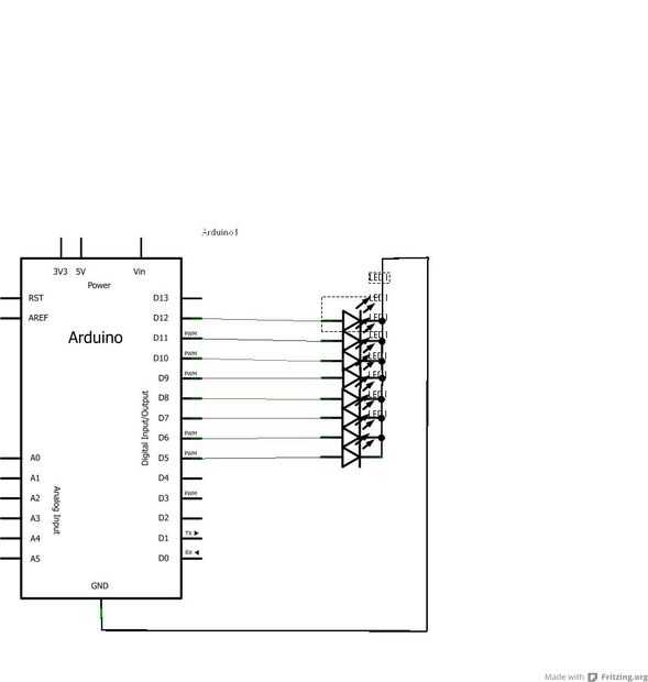 LED + arduino "running light" (muy simple, buena para principiantes) (2 / 3 paso)
