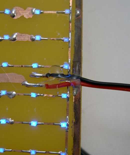 Utilice pegamento caliente para alivio de la tensión los cables.