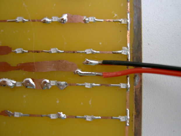 I mano soldar los componentes SMD en este paso. Flujo debe utilizarse antes de alinear los componentes que es la parte más tediosa de este paso. Una pinza es necesaria para mover el LED y una tachuela se puede utilizar para mantener los LEDs a los pads de soldadura mientras se suelda.