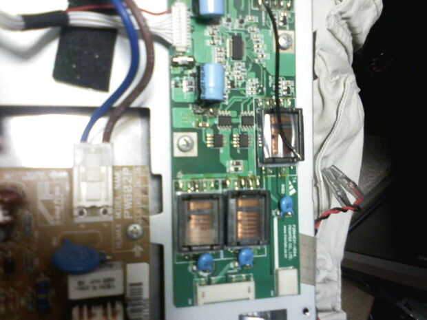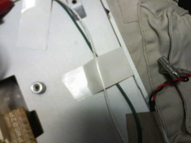 Ahora que yo he sustituido el CCFLs, puedo quitar el tablero del inversor como está completamente separado de todo lo demás. Mi tira de LED funciona de 12VDC, así que tuve que buscar un origen y un punto neutral para soldar los cables. Desde mi experiencia, esto es una tensión muy frecuente en pantallas LCD, pero asegúrese de encontrar una fuente de 12V que está apagado cuando la pantalla está encendido y apagado cuando la pantalla está activada o bien las tiras de LED siempre se encenderá mientras esté conectada la pantalla. También, asegúrese de que es capaz de suministrar la corriente necesaria para las necesidades de LED. Quería utilizar un fusible en la línea de 12V para ser seguro. Una vez que os adjunto mis cables, necesitaba fijarlos para que no moverse o quedar apretados durante el montaje final. Ahora pude continúan vuelva a la pantalla hasta que completamente se puso detrás junto.