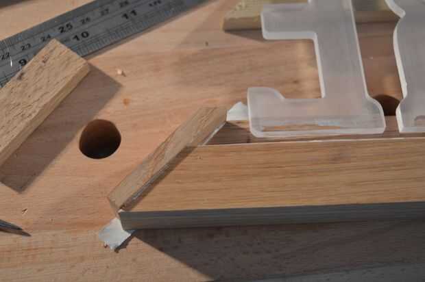 Después de que el CA se había secado y también un vistazo por primera vez que yo no estaba contento con los extremos así que cortar dos trozos pequeños de roble blanco y había pegado a los 45 grados termina entonces cepillada, raspada y les había lijado suave y al ras y luego re aplican algún aceite de teca.