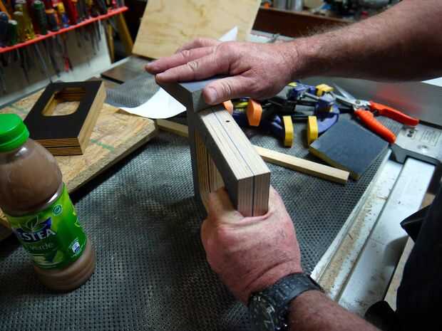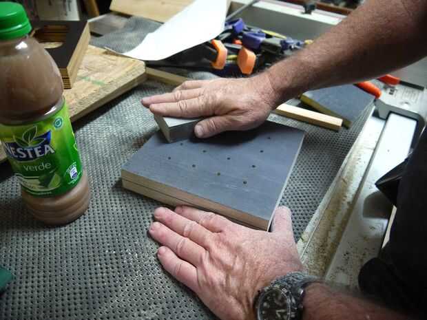 Lije todos los bordes, frente, parte trasera e interior también. Asegúrese de lijar el frente lo suficientemente para que las marcas de lápiz desaparecen.