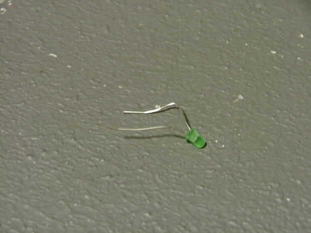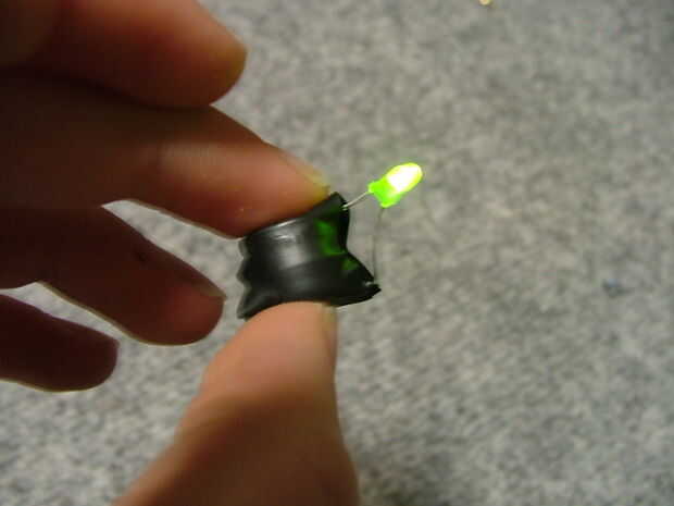 Doblar los cables del LED para que se ajusten a la forma de las pilas y luego con cinta adhesiva el LED de las baterías para que las luces. Estar muy seguro de que los conductores son grabados en lugar firmemente porque este fotorresistencias se reboto mucho.