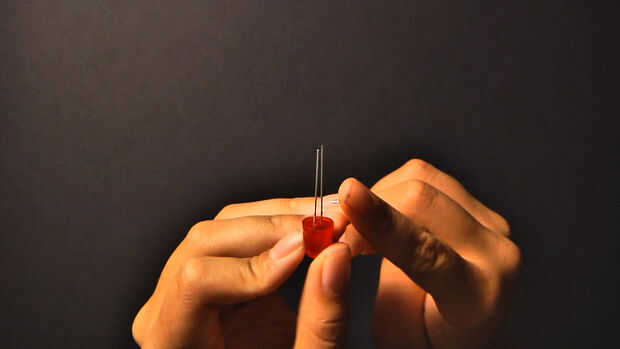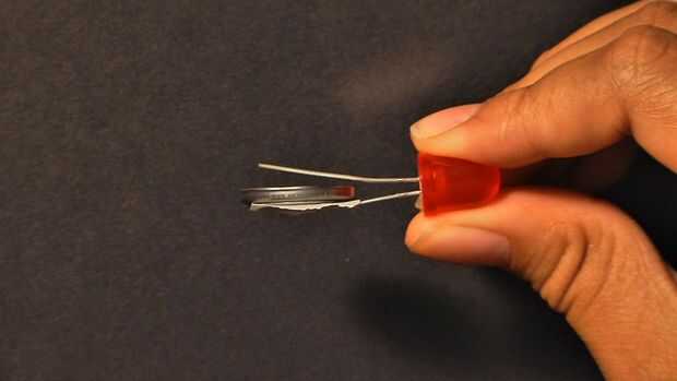 Encontrar el largo y el corto viene del LED. Deslice el LED sobre la batería con el cable largo en el lado "+" de la batería y el cable corto en el otro lado de la batería. Si el LED no se encienda, probar antes de grabar los bancos la batería. Utilice cinta de enmascarar en la cinta firmemente el cable corto del LED en la parte posterior de la batería, dejando un espacio de alambre cerca del LED gratis. Doblar el alambre largo ligeramente lejos del lado "+" de la batería.
