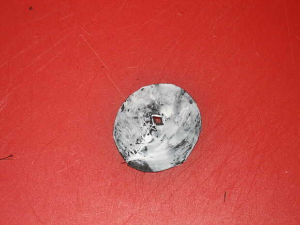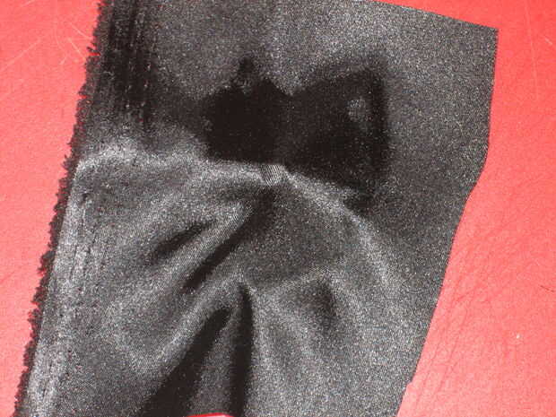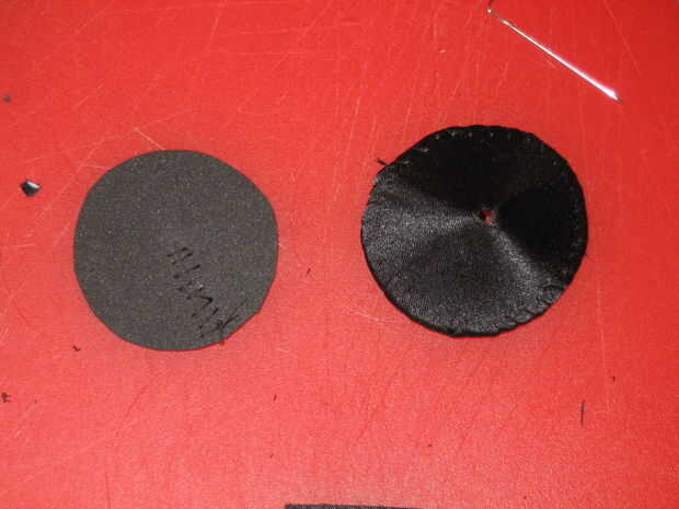 En este punto, comencé a coser a la tela a la pastie. Una vez que se hizo, recortar a la tela sobrante en la parte inferior y el tejido sobre el agujero en la espuma fue a abrirse otra vez.