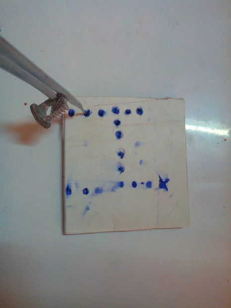 Paso 3 = Haga los agujeros en los puntos según alfabetos H y usando la brújula.