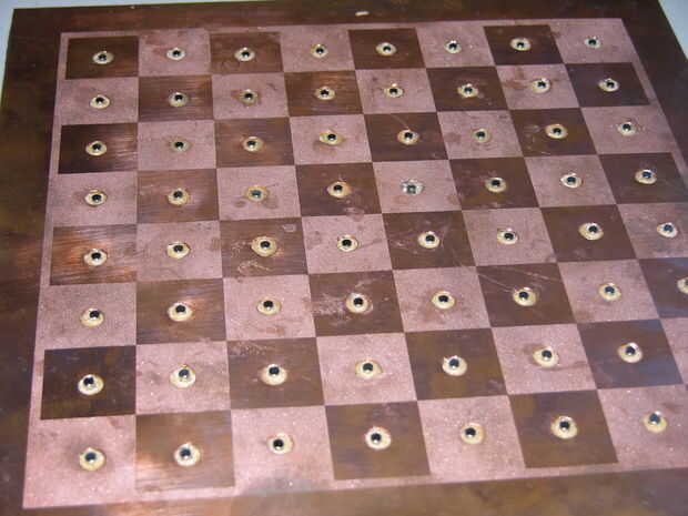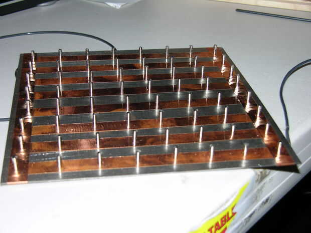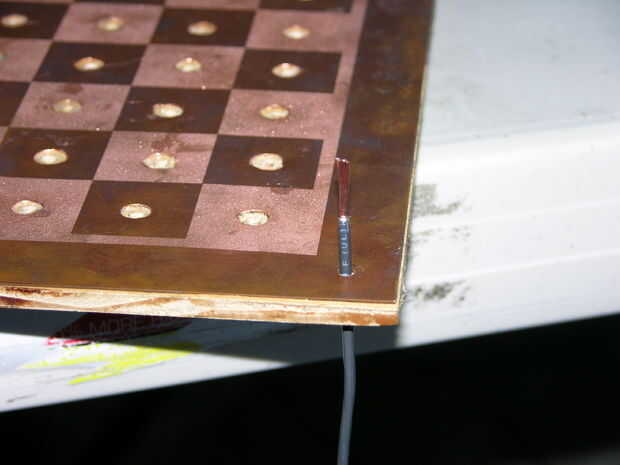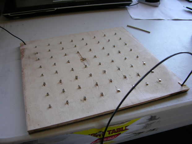 pensé en tres maneras diferentes de cableado del tablero antes de que finalmente se estableció en el se describe en este paso. Mi primera idea fue individualmente cada una de las 64 casillas en el tablero de conexión a una fuente de alimentación, pero pensé que tenía que haber una manera más fácil. Mi segunda idea fue conectar ocho tiras de metal en serie, los imanes mantienen en su lugar y conectar los confines de las tiras de metal a la fuente de alimentación. Mi tercera idea es lo realmente.