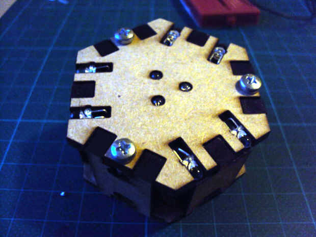 ALS laatste monteer je het beschermende plexiglas op de bovenkant. DIT doe je mejor conocido tweecomponentenlijm. Doe een beetje lijm op het midden van de bovenkant. Druk het plexiglas op de lijm. Zorg er voor dat het plaatje en zit de het midden. Piscina een lijmklem om voldoende druk te pieza zodat de lijm kan uitharden.