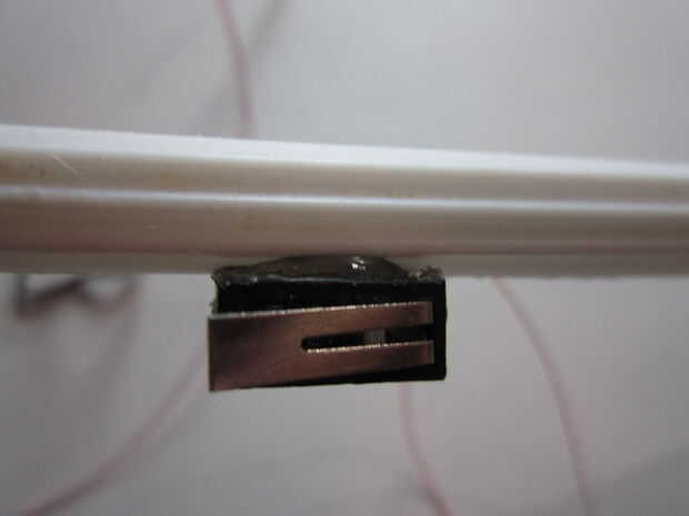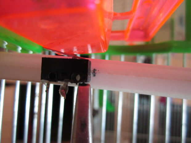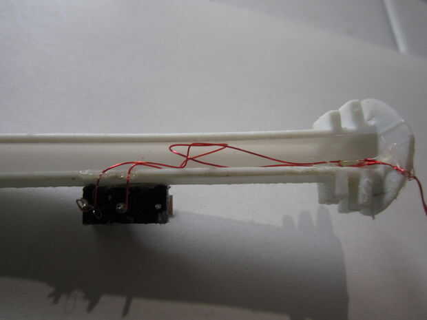 Poner el lenguado más pequeño de pegamento caliente en el interruptor. Ponga en la percha donde la marca está.