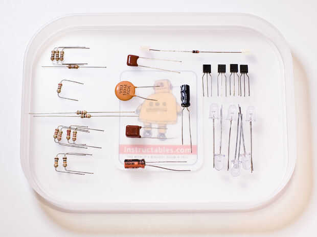 Los LEDs pueden ser de cualquier color, sin embargo se ajustan los valores de resistencia de los colores utilizados aquí. Si utiliza diferentes colores, uso 270 ohmios para el rojo, porque roja LED tienen baja tensión, así necesita mayor resistencia para limitar la corriente. Las actuales limitantes resistencias para los LEDs se ajustan para lograr el equilibrio de brillo entre ellas. Por lo que su kilometraje puede variar.