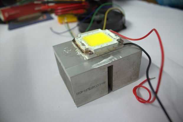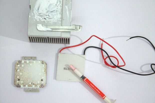 3. Coloque el LED en la parte superior el lado frío del lado caliente y peltier en el disipador de calor de una manera que peltier se intercala.