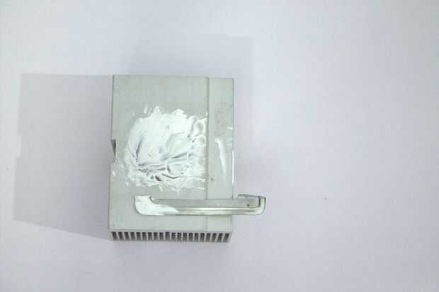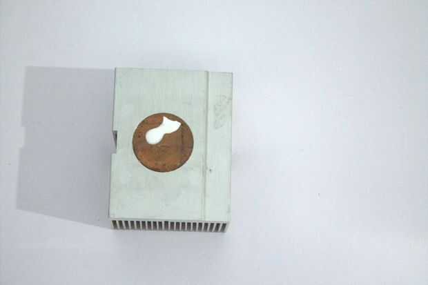 1 algunos térmica pasta sobre el disipador térmico y aplicarlo uniformemente con una tira de metal.