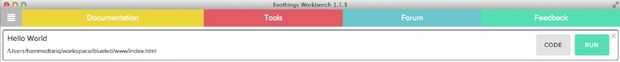 - Ahora haga clic en el botón "Código" para ver la situación del código, abra el archivo "index.html" en tu IDE favorito y cambiar algo, como el color de un botón, el estudio de Evothings será inmediatamente elegir el cambio y volverá a cargar la aplicación en el cliente de Evothings, esta funcionalidad le permite rápidamente prototipo su aplicación web para dispositivos de IoT.