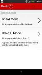 5. Seleccione modo de droide de IE. (En el modo tablero necesita subir el programa a la placa de E/S como normal).