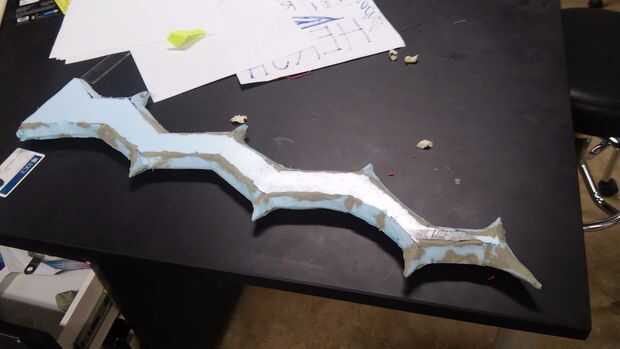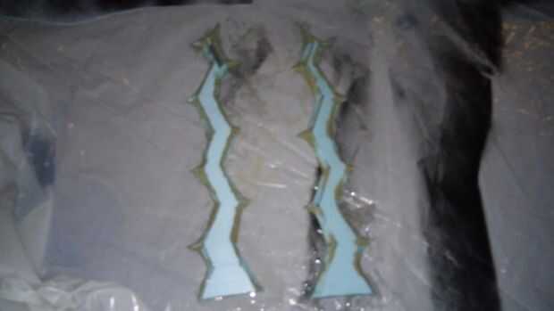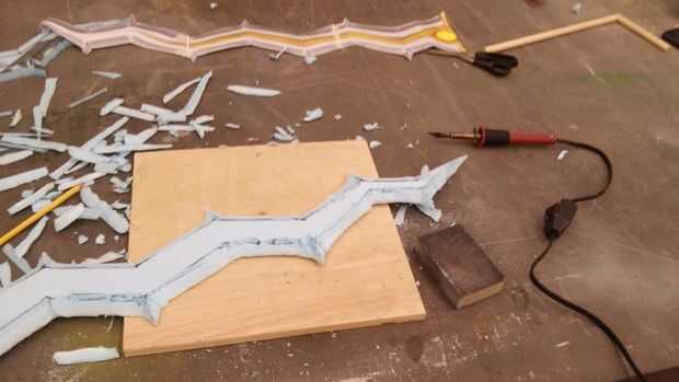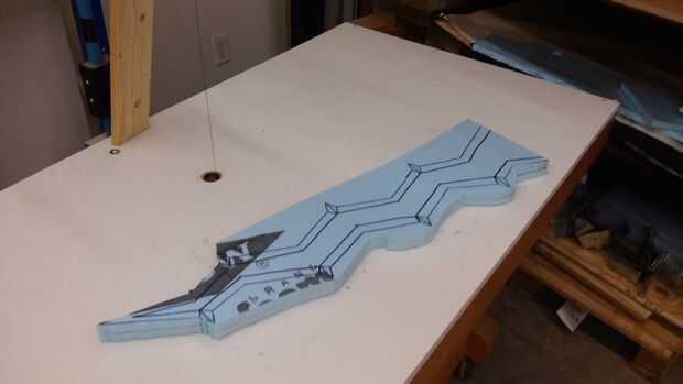 El primer paso para hacer la hoja de la espada de Levin está creando los moldes positivos que usarás para la hoja del molde. Para hacer esto, tallado espuma del aislamiento usando cuchillos calientes. Tiempo para completar: