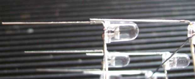 Lo siguiente se refiere a captar el 2 º nivel que se fija a la Junta, la soldadura a todos los ánodos de los LEDs que vertical, superposición de unos 10mm entre estos dos niveles.