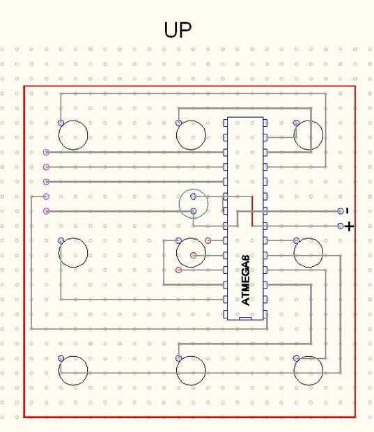 Dada la orientación de lo atmega 8 y el condensador, es aconsejable colocar un soporte para este microprocesador. Este microprocesador cuenta con una interfaz de ISP, que permite su programación a través de 5 cables de circuito, sin necesidad de un oscilador de cristal.