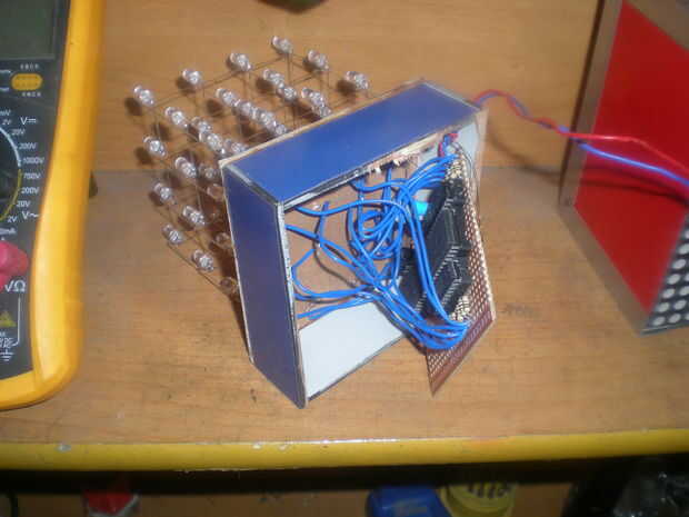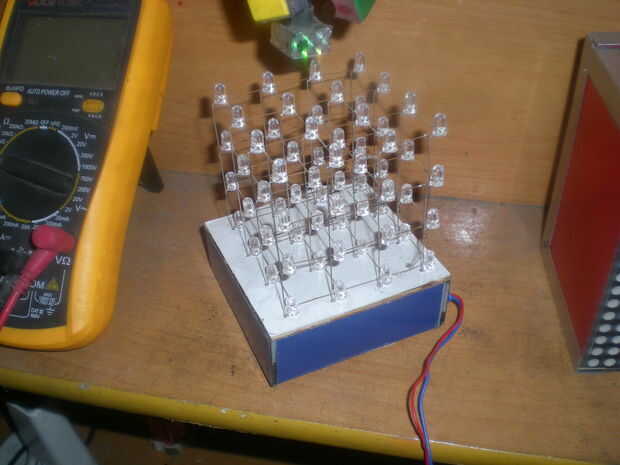 Mucho tiempo atrás encontre un articulo sobre hacer un 8 x 8 x 8 cubos de RGB LED por Kevin Darrah.Esto me inspiro totalmente pero sabiendo a mi esposa me mataría si asumió el control la casa con breadboards que decidí escalar hasta un 4 x 4 x 4 cubo