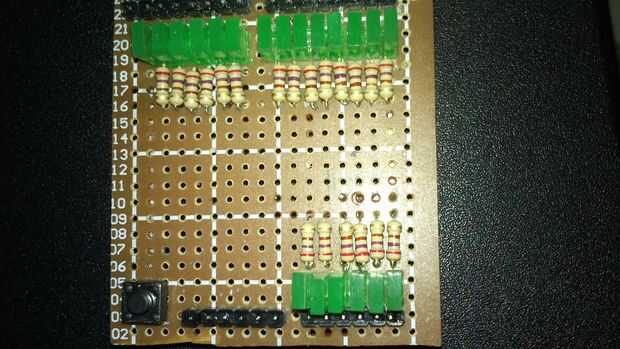 Ahora, para comenzar con los LEDs, asegúrese de seguir el esquema o siguen el patrón superior en soldadura con las resistencias.