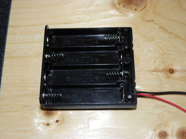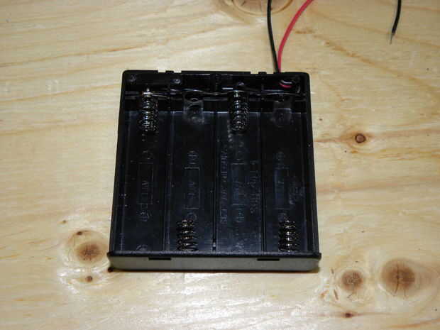 Quitar los contactos de modo que haya más espacio para los componentes. Utilizar el último contacto ya soldado a un cable rojo para hacer de este un titular de 3 celular. La ranura restante se utilizará para el interruptor de control de brillo.