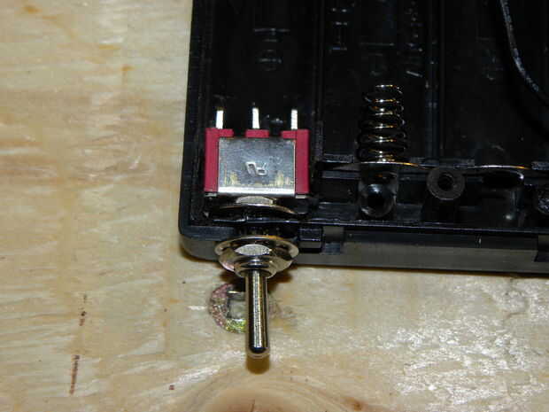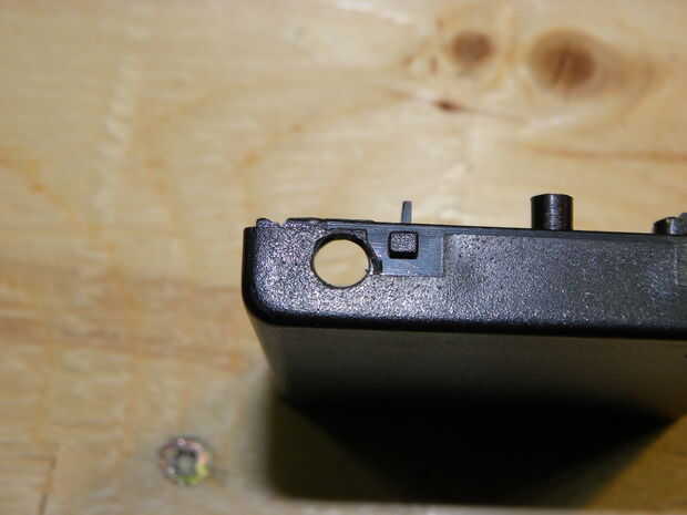 Haga un agujero para el interruptor de control de brillo. Un soldador caliente puede usarse para ampliar el orificio. ADVERTENCIA: Al calentar el plástico, hacer esto en una zona de ventillated.