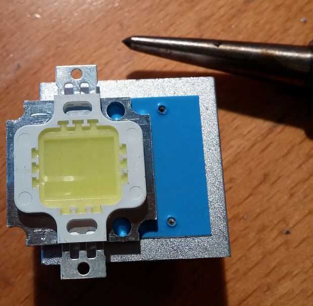 Fijando el LED en el disipador de calor es probablemente el más difícil pero el más importante del proyecto.