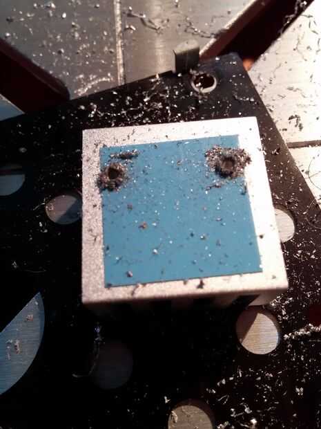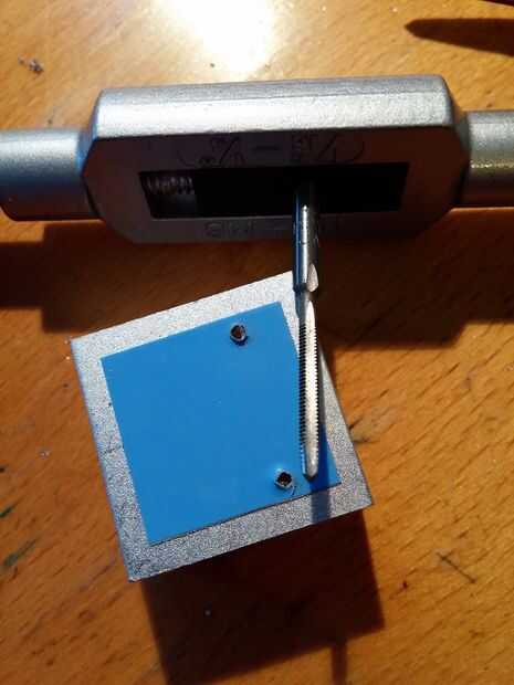 - Limpiar y hacer los agujeros de rosca con el grifo. Lento y constante, girar a un recorrido por la mitad y volver un cuarto, esto es el movimiento. Mejor probar primero en un repuesto, podría ser un poco complicado si nunca lo has hecho antes, sobre todo que los pequeños. Usted puede encontrar a una guía aquí. Aluminio puede ser pegajoso el grifo acero, comprobar después de cada taladro