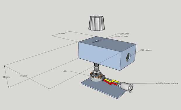 El regulador se instala en el cable blanco y azul de la fuente de alimentación. Como se puede ver en la foto el coche ha una entrada de energía cable de la izquierda y dos a la derecha el cable más fino, blanco y azul es donde tienes que instalar el regulador de luz. (es el cable azul y blanco del atenuador, en la foto del interior de la caja pequeña su es de color rojo y verde) El regulador es uso es simplemente un potenciómetro. Es un potenciómetro de 100K en una caja pequeña, ninguÌ n electrónico acaba de vender los dos cables en el centro y un conector externo del potenciómetro. Es posible instalar un 10V PWM (modulador de onda Puls) pero no tengo uno. Con un PWM lo mejor posible obtener un amortiguador más suave más gradual oscurecimiento. Me pude haber fijo en la rampa de LED pero como esta mi rampa es completamente independiente de la fuente de alimentación. Las ilustraciones anteriores son auto explicativas. Como mucho puede comprendo no importa eran conectar más o menos sobre el potenciómetro solo usar la olla de conexión media y lateral.
