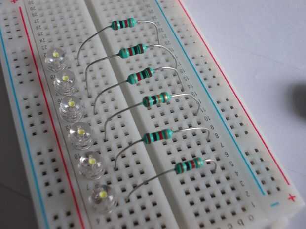 Conectar el positivo del LED a uno de los extremos de la resistencia como se muestra arriba.