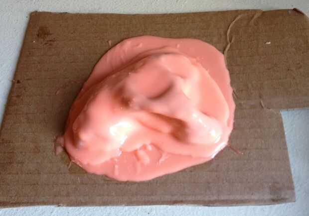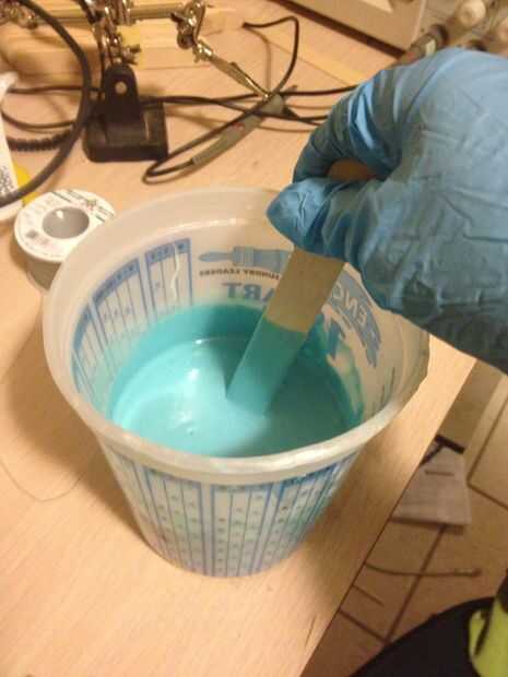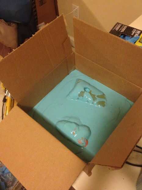 25 de rebote, este proceso es un poco más complicado. Encolado en primer lugar, la bodega (con cemento de goma o de otro tipo) sobre una lámina plana de cartón (no necesitadas de paredes). Luego, mezcle un poco de rebote 25 partes A y B junto, 1:1 volumen. En este caso, es mejor pecar de demasiado poco, porque siempre se pueden mezclar para pintar en. Pintura de silicón mezclado en y déjelo secar durante una hora (o esperar a que se siente pegajoso pero no salen en su guante). Repita este proceso de mezcla y pintura hasta que haya hecho 4 o más capas. Lo he comprobado para asegurarse de que el molde era lo suficientemente grueso como fue viendo cómo translúcido era--la primera capa es bastante translúcida, pero la capa final debe dejarlo todo bastante opaco. También pueden añadir espesantes a la silicona (2 capas y más adelante) para lleva a cabo con voladizos para que la silicona no solo fluya.