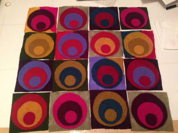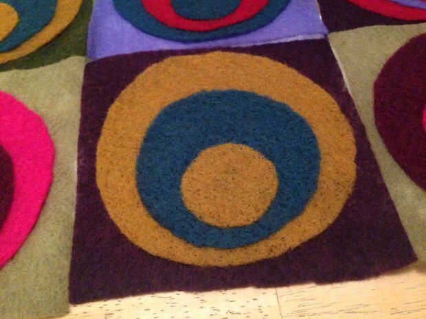 Me gusta crear fieltro, por lo que he creado una bolsa con la luciérnaga LEDs en mente. Hay muchos tutoriales de fieltro grandes en línea y muchos Instructables en este sitio. Aquí corté algunas Prefelt (disponible desde aquí) en graduado círculos y brevemente aguja-felted les juntos. Luego agregué al frente de una bolsa de fieltro mojado fieltrar en lugar. Después de que la bolsa se formó y se secó, de la aguja más lana en lugar de definir los círculos de fieltro, y utilicé algunos hilo negro para definir la rejilla de 4 x 4. Los LEDs se colocaba en el centro de los círculos más pequeños.
