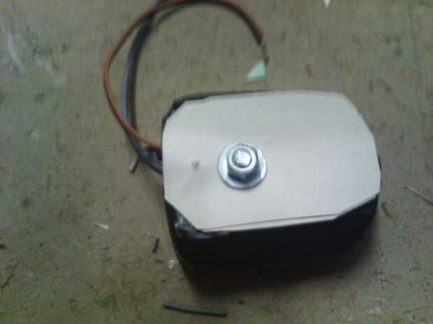 Apesar de que son cuidado en no dañar el cable será bueno colocar un protector de cables. Quite el no y la arandela. Toma una hoja gruesa de papel y corte a la forma que se adapta a la parte posterior del reflector. Hacer un pequeño agujero al tamaño del tornillo en el reflector y colocar el papel. Ahora el cableado está a salvo de daños.