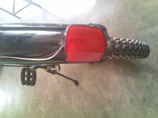 Eliminar cualquier reflector cuando se instala. Si no tienes reflector perfore un agujero en la parte trasera de su bicicleta. Ahora toma el reflector modificado y fije a la parte trasera de su bicicleta en el lugar donde se coloca el reflector o el hoyo que ha perforado. Ahora ponemos la arandela y la tuerca y se.