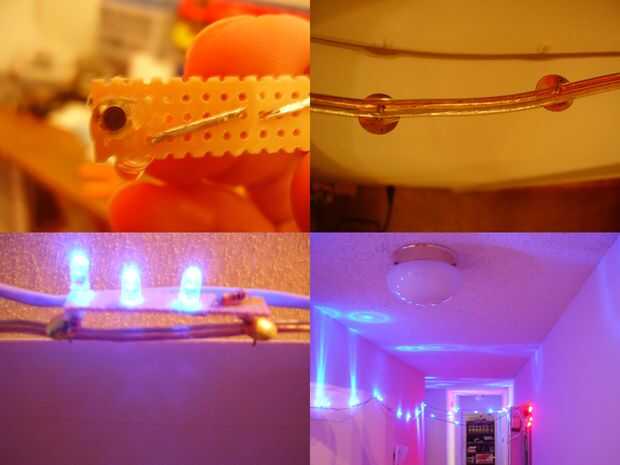 Es un primer plano de un módulo de trabajo y mi pasillo en luz cerca. Si usted desea hacer un módulo rojo en vez de un verde o azul, sustituir los tres LED azules o verdes para rojo de 5 unos y el resistor de 100 ohm para una resistencia de 1 ohm.