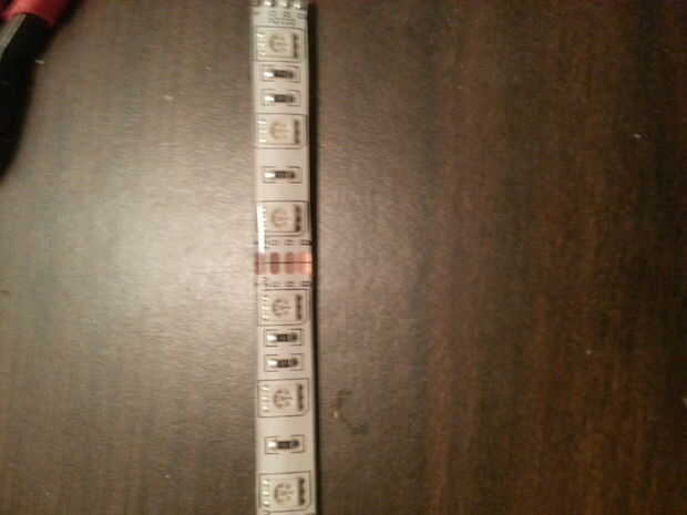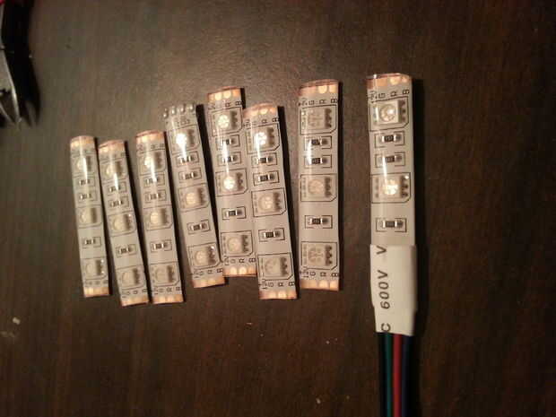 Tiempo para la tarea de enormes proporciones. Tenemos que conectar todos los segmentos juntos. Usé un cable USB largo a hacerlo. Esto tiene que ser la parte más laboriosa ya que tendremos que tira de la lata y soldar 4 cables para cada segmento.
