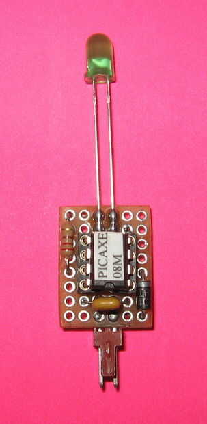 un led luces no sólo cuando la energía se aplica, pero también genera una pequeña tensión cuando se aplica luz. Un microcontrolador PICAXE se puede utilizar para controlar este voltaje. Voy a mostrar cómo hacer una vela electrónica que parpadeará un led cuando se pone oscuro.