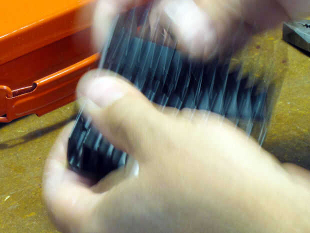 No tenemos la cabeza del tornillo, así que de se trata. Las dos mitades se rotan juntos para formar un bloque, pero no podemos usar este método en el otro lado, para que te Inserte un pasador.