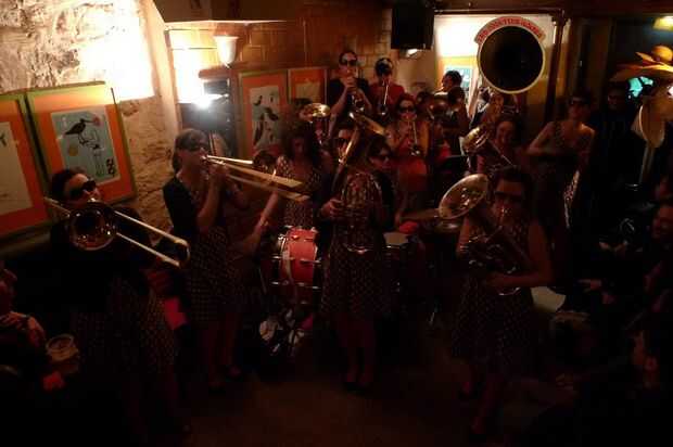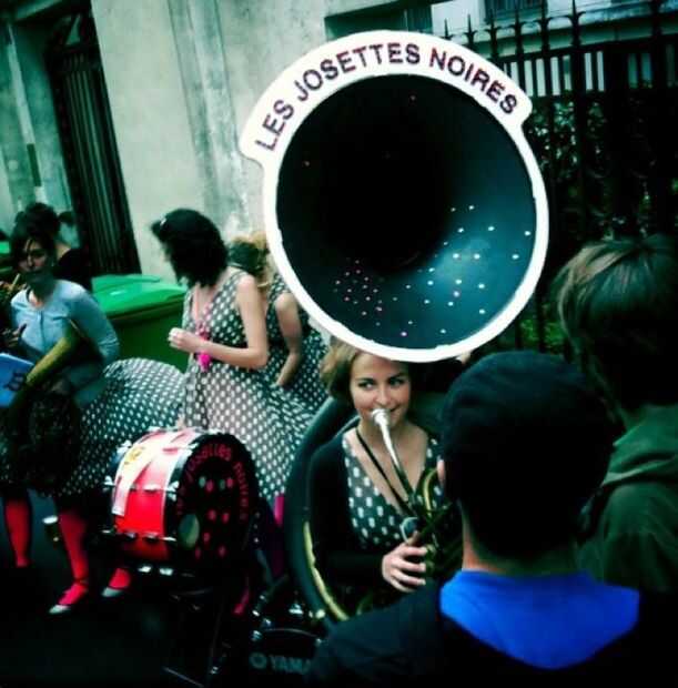 Nombre de la banda es 'les josettes noires'. Son fanfarria de la muchacha en París.