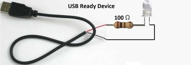 Ahora Conecte el extremo de repuesto de resistencia para el cable rojo del cable USB y el LED al cable negro del cable USB.