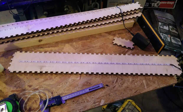 , tenemos una carga de LEDs SMD libre, y quería probar cómo miraba embebido en acrílico.Usando el cortador láser, hace agujeros en el acrílico para los LEDs.Los LED tienen las almohadillas en los extremos y son un poco más largo (3,5 mm) que el acríl