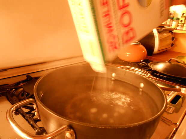 Una vez que el agua ha llegado a hervir, apagar el fuego y comenzar a añadir el bórax.