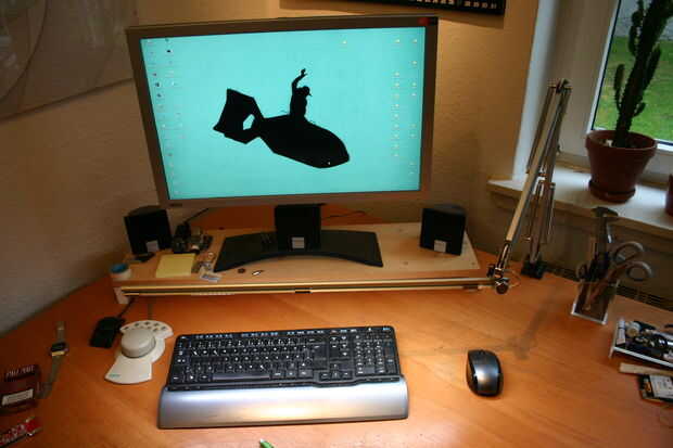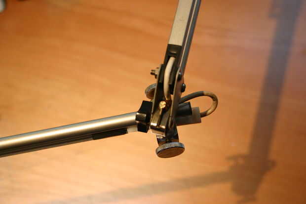 Para colocar la luz en línea recta por encima de mi teclado, he tenido que fijar el brazo de "un poco lejos" en el lado derecho de mi escritorio.