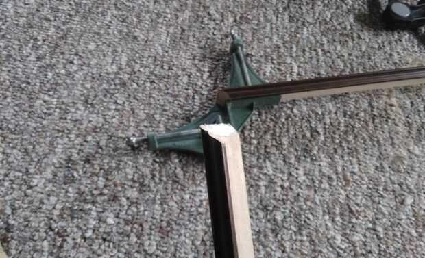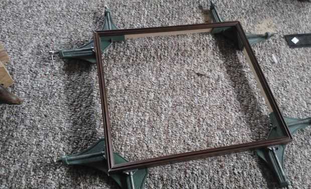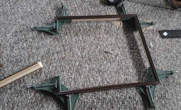 Encontré algunos ajuste en nuestra tienda de chatarra local, mina fue 1/2 pulgadas x 1 pulgada, pero realmente esa parte es a su preferencia. Utilicé una caja de ingletes para los ángulos de 45 grados, he pegado con pegamento del gorila y afianzado con abrazadera juntos y se hicieron las esquinas con tornillos de acabado.