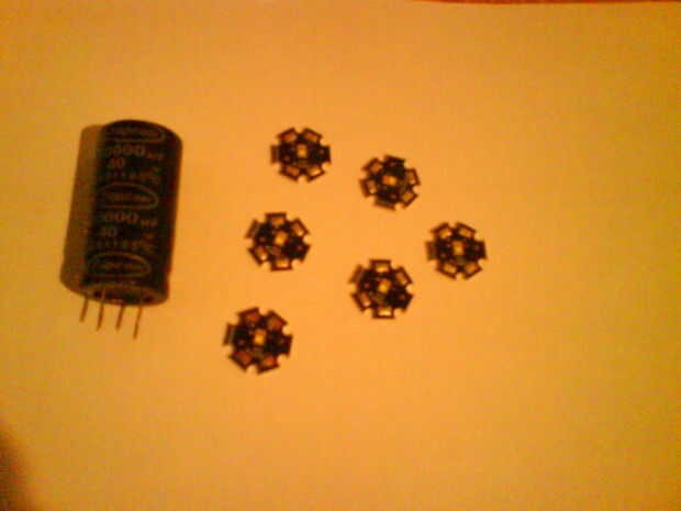 En segundo lugar, se necesita un condensador grande. Voy a utilizar un capacitor de 10mF 40V. El voltaje del condensador se tendrá que ser lo suficientemente grande como para alimentar todos sus LEDs en serie, como no se pueden utilizar en paralelo, sin algún tipo de circuito limitador corriente en cada LED.