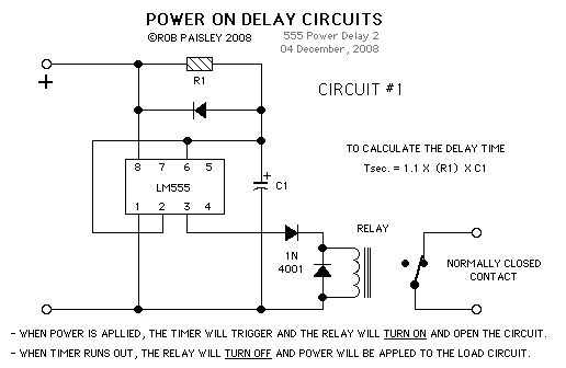 Un circuito bastante simple. Retraso de tiempo variable se logra mediante el uso de una olla en lugar de R1.