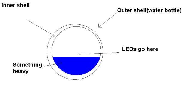 Idealmente me gustaría tener una bola de plástico dentro de otra bola de plástico transparente. Pero entonces la carga se complica y consiguiendo una bola dentro de una bola significa cortar para arriba.