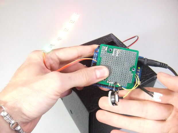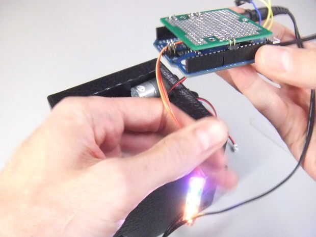 3. conectar tablero de prototipos para Arduino. Prueba el LED y el brillo y el motor