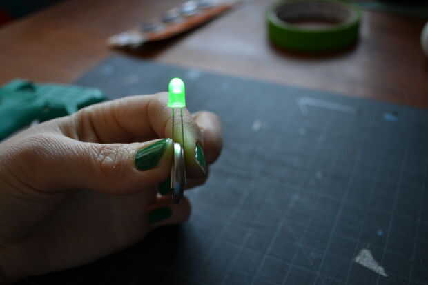 A continuación, examinar la pila de 3 voltios y encontrar el lado con un '+' en él. Este es el lado positivo de la batería. Tienes que conectar la pata larga del LED a este lado y la pata corta con el lado negativo. Si se conecta la manera correcta, el LED deberá encenderse. Si no, trate de cambiar las piernas – esto dolerá el LED ya que la tensión es tan baja.