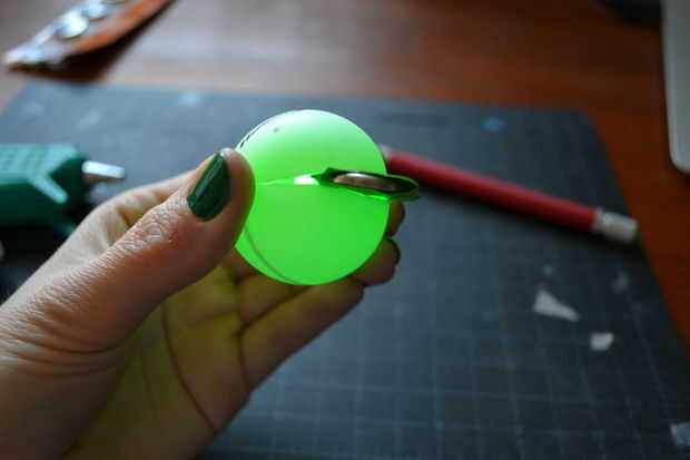 Colocar los dedos en los bordes del corte, aplique una ligera presión para que la raja se abre. * Cuidadosamente * Deslice el combo batería de LED en la pelotita de ping pong. Esto puede tardar un poco negociación entre usted y la pelotita de ping pong. Asegúrese de no forzarlo en y hacer el corte más grande en el proceso.