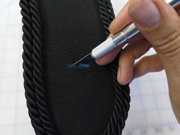 Corte una abertura en la cubierta de la venda e inserte el extremo de sus ramas para que descansar entre la cubierta y la banda de plástico.